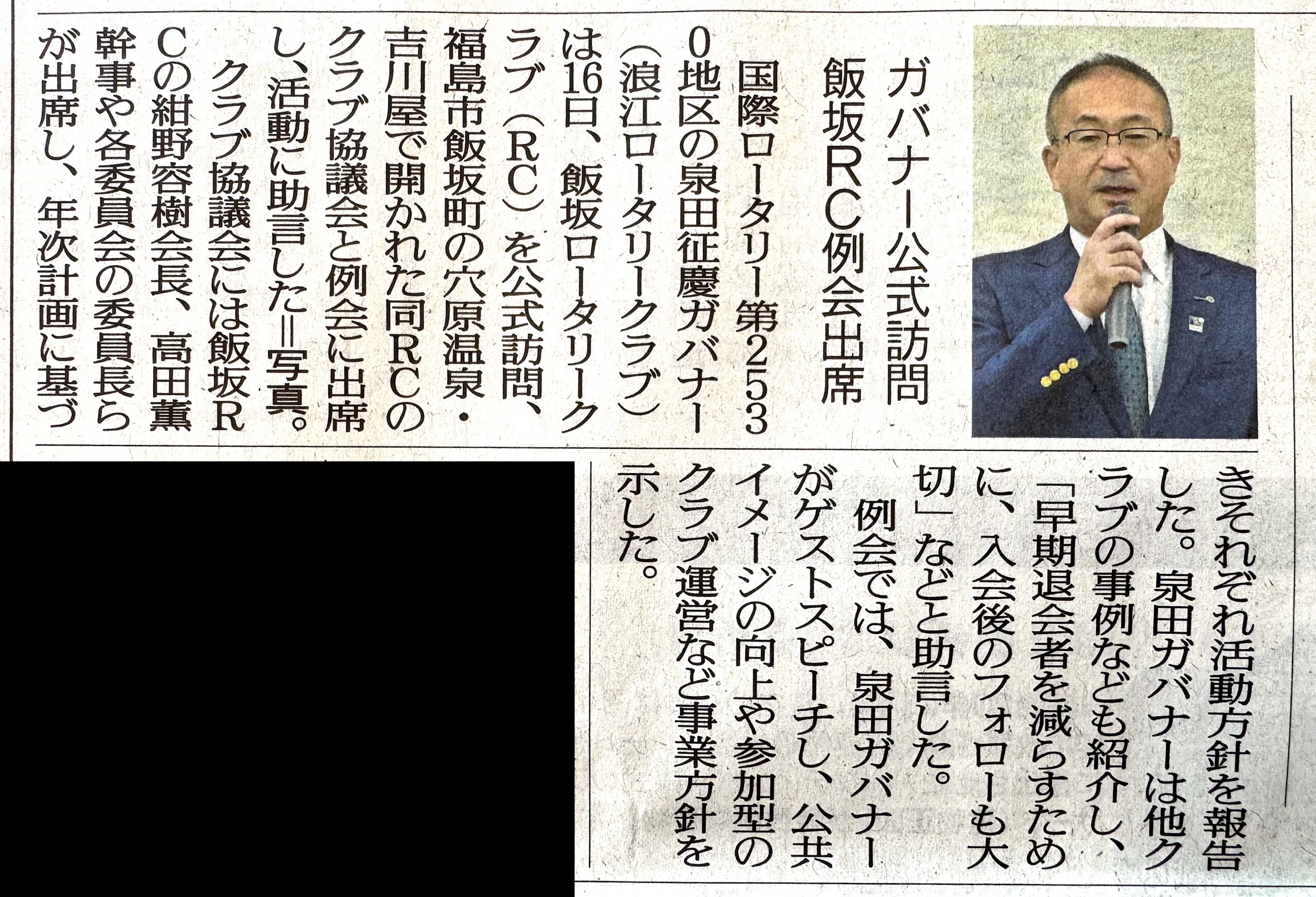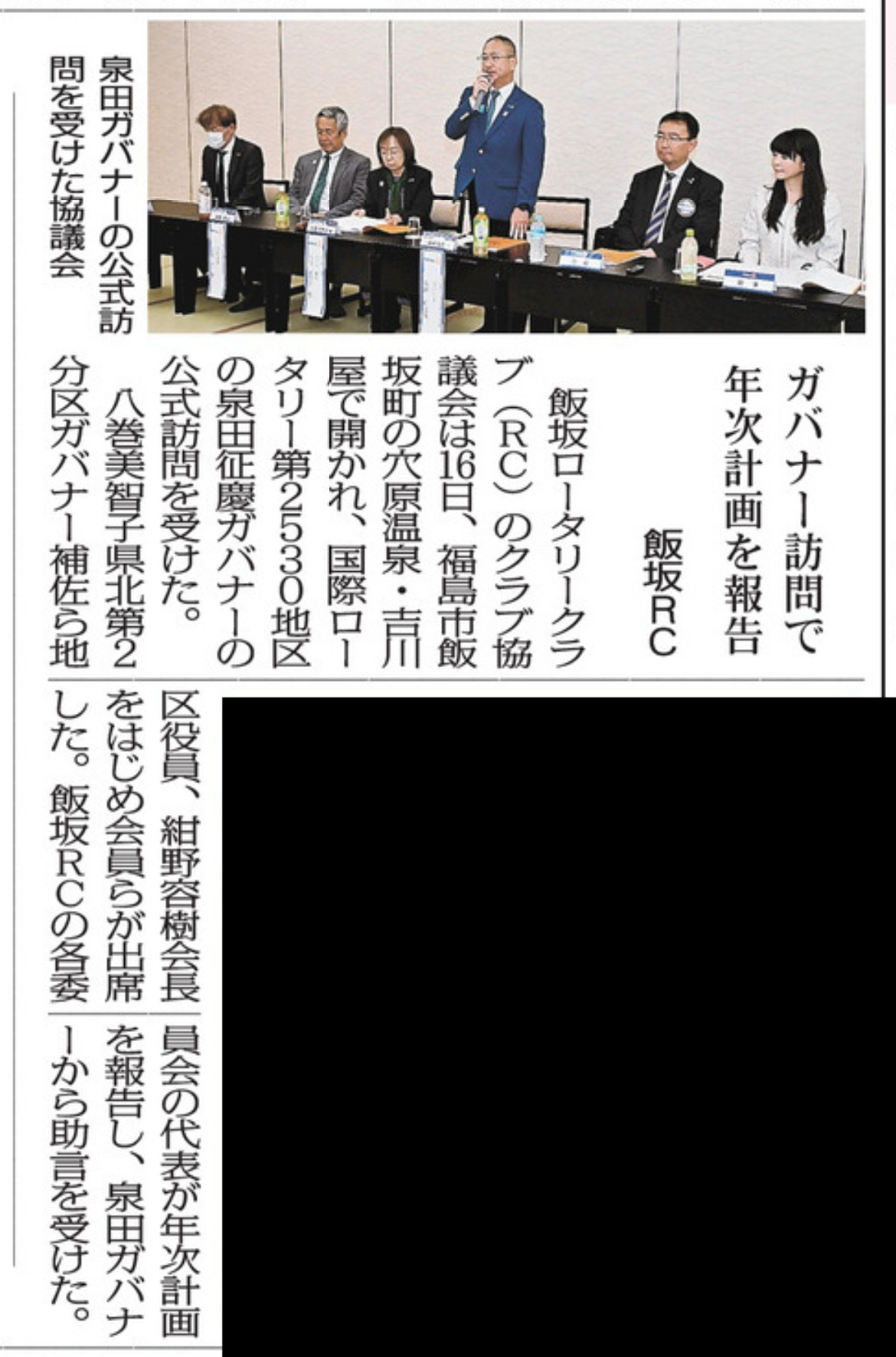 国際ロータリー2025-26年度 泉田 征慶ガバナー公式訪問 | 国際ロータリー第2530地区 飯坂ロータリークラブ